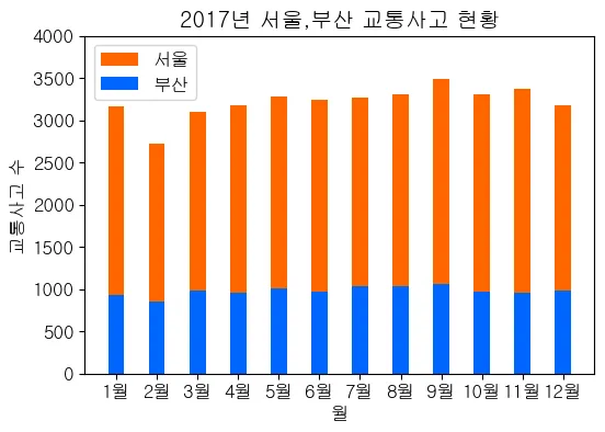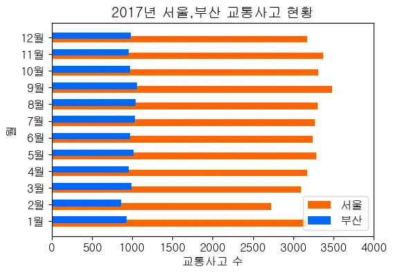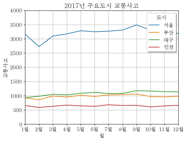 # 2017년 1월~12월까지 도시별 교통사고 건수