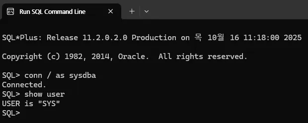 Run SQL Command Line에서 접속