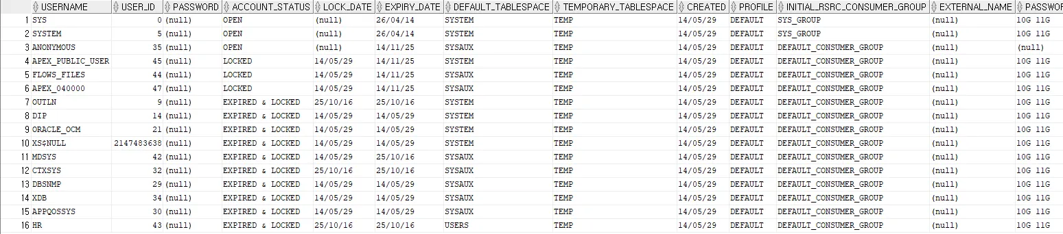 select * from dba_users;