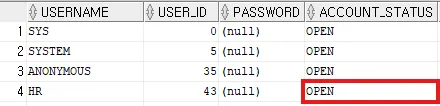 alter user hr identified by hr account unlock;