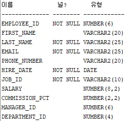 - SQL Developer에서 SQL문은 선택적으로 세미콜론(;)으로 끝날 수 있음