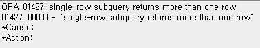 - 서브쿼리에서 여러 개 값이 나올 경우 오류 발생