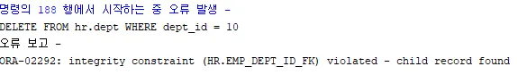 - 참조하고 있는 자식 데이터가 있는 경우 삭제 불가