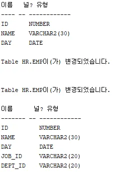 ALTER TABLE hr.emp MODIFY job_id varchar2(30);
