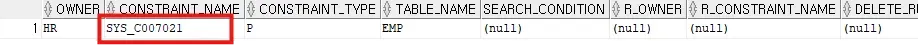 - 제약 조건 이름을 생략하게 되면 SYS_C 숫자 형식으로 제약 조건 이름이 생성됨