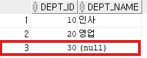 - dept_name 컬럼에 unique 제약조건이 생성되어 있기 때문에 중복값 입력 불가