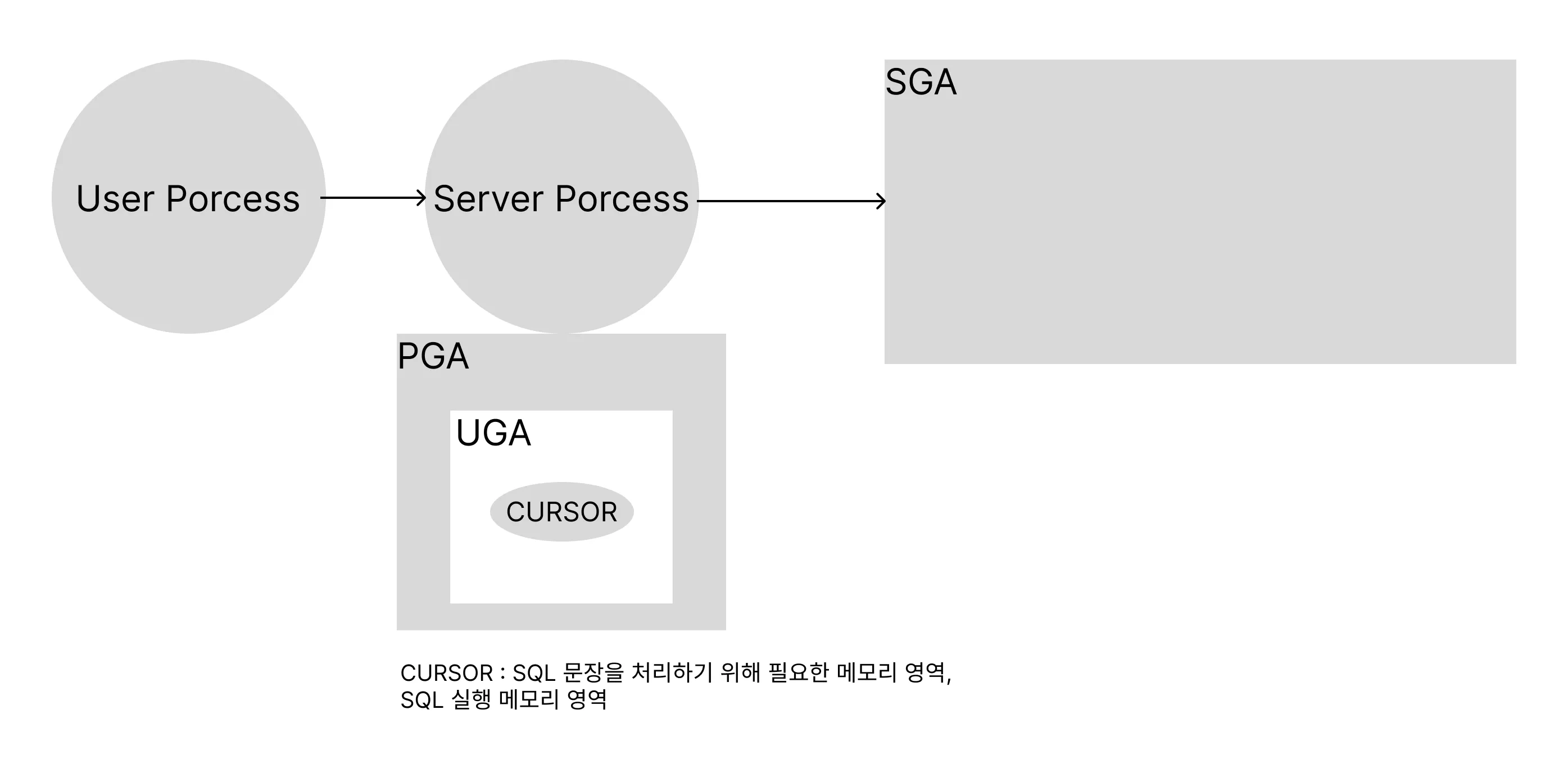 - CURSOR : SQL 문 실행 메모리 영역(parse, bind, execute, fetch)