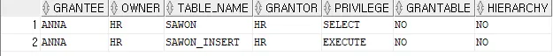 - insert 권한이 없지만 프로시저 실행 권한을 통해 간접적으로 insert 수행 가능