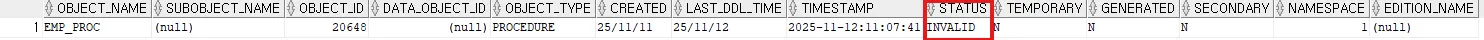 SELECT * FROM user_objects WHERE object_name = 'EMP_PROC';
