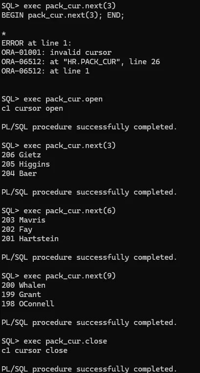 ORA-01001: invalid cursor - 프로그램 호출이 끝나면 커서를 close하지 않았더라도 오라클이 암시적으로 커서를 닫아줌