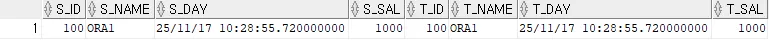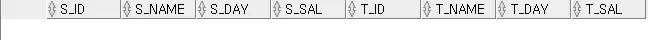 SELECT s.id s_id, s.name s_name, s.day s_day, s.sal s_sal, t.id t_id, t.name t_name, t.day t_day, t.sal t_sal