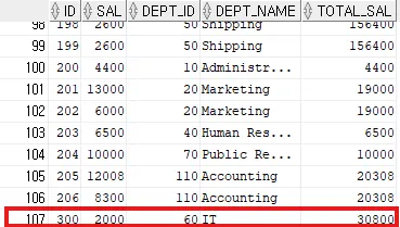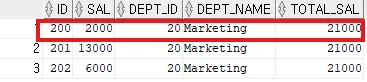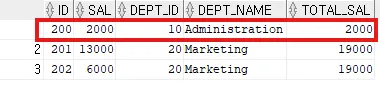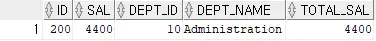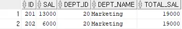 SELECT e.id, e.sal, e.dept_id, d.dept_name, d.total_sal