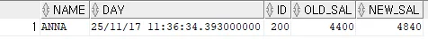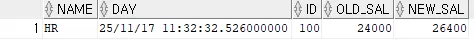 INSERT INTO hr.audit_emp_sal(name, day, id, old_sal, new_sal) VALUES(user, systimestamp, :new.id, :old.sal, :new.sal);