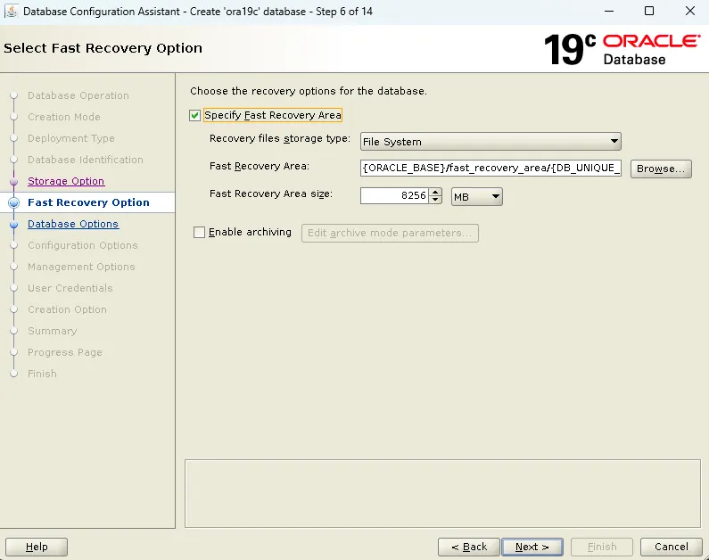 db_recovery_file_dest_size of 8256 MB is 0.00% used. This is a