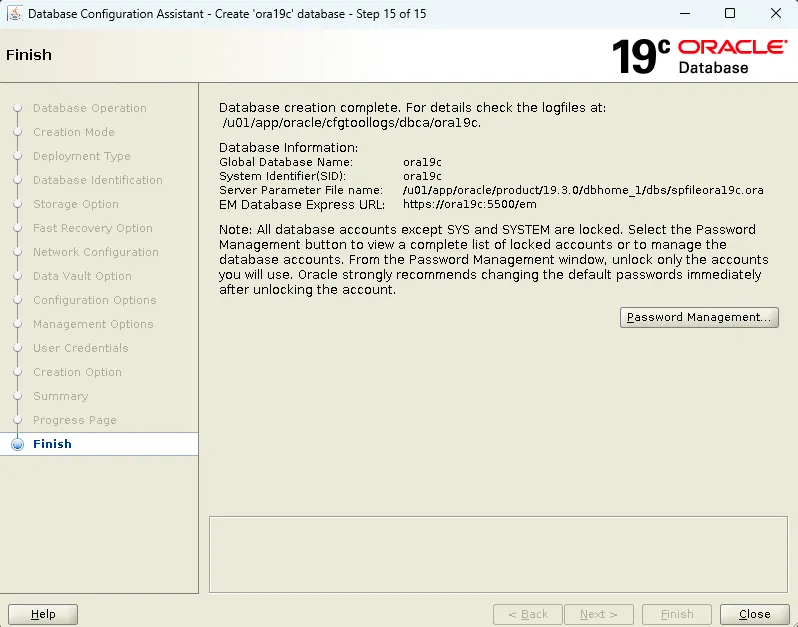 - pfile(initora19c.ora)로 데이터베이스 실행