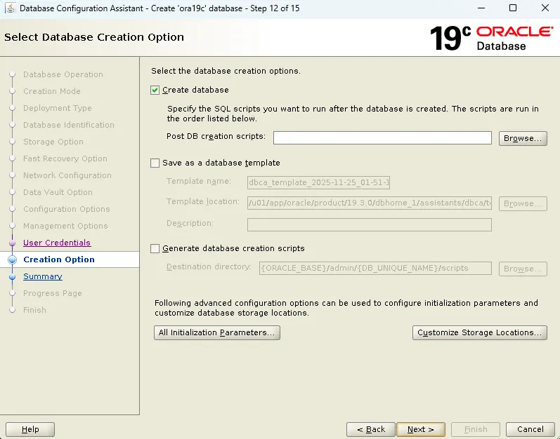 initora19c.ora파일 생성