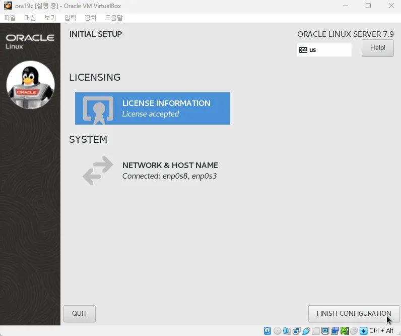 - LICENSE 동의 후 FINISH CONFIGURATION