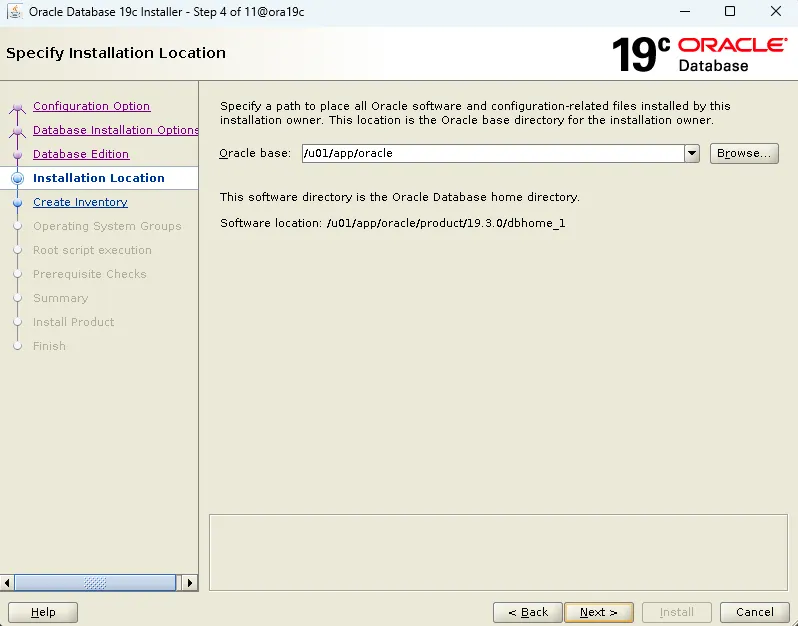 [oracle@ora19c ~]$ cd $ORACLE_BASE