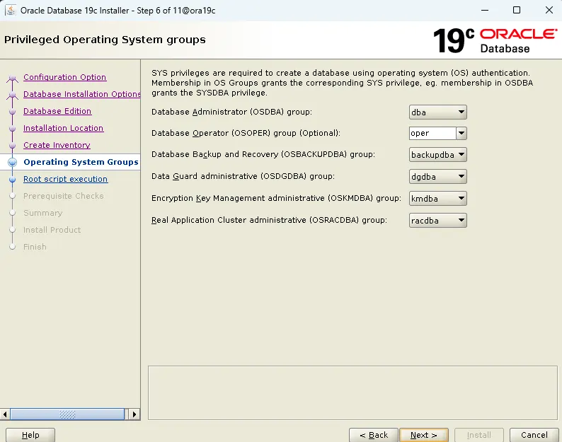 uid=54321(oracle) gid=54321(oinstall) groups=54321(oinstall),54322(dba),54323(oper),54324(backupdba),54325(dgdba),54326(kmdba),54330(racdba)