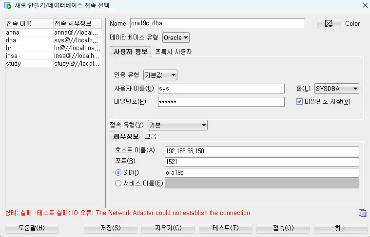 # 데이터베이스 실행 -> 오류 발생