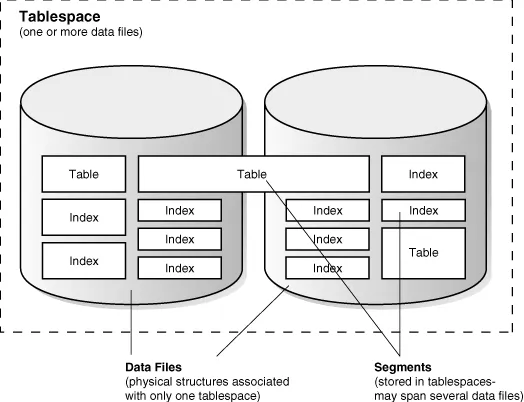 - 세그먼트는 테이블스페이스에 속한 여러 데이터 파일로 확장 가능