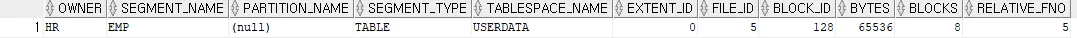 select * from dba_segments where owner = 'HR' and segment_name = 'EMP';