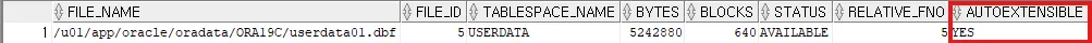datafile '/u01/app/oracle/oradata/ORA19C/userdata01.dbf' size 5m autoextend on;