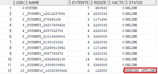 - 기본 undo 테이블스페이스 변경 전에 Undo 세그먼트를 사용 중이던 트랜잭션 존재 → PENDING OFFLINE 상태