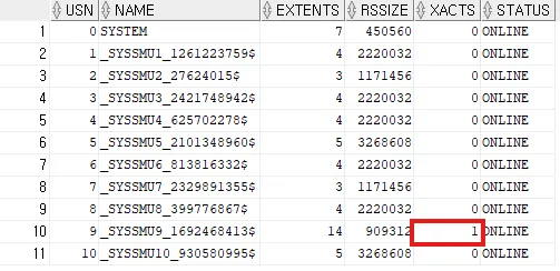 - usn : Undo Segment Number, Undo 세그먼트를 식별하는 번호