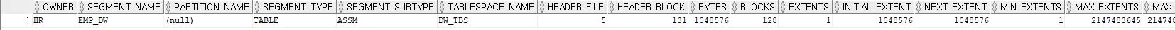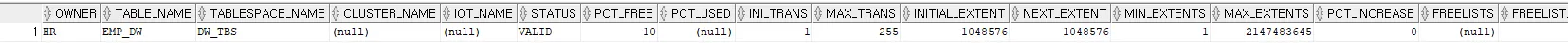4. hr.employees 테이블을 hr.emp_dw 복제하세요. hr.emp_dw 테이블은 dw_tbs 테이블스페이스에 생성하세요.