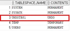 - contents 컬럼이 UNDO로 되어있는 테이블스페이스