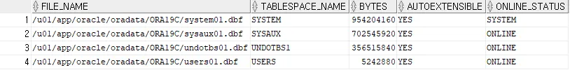 datafile '/u01/app/oracle/oradata/ORA19C/undo01.dbf' size 10m autoextend on;