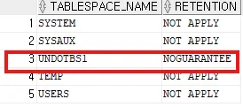 - undo_retention 값을 보장하기 위해 retention guarantee 설정