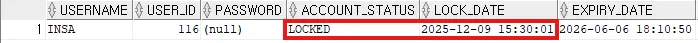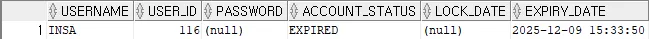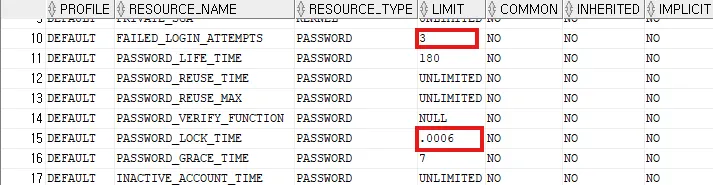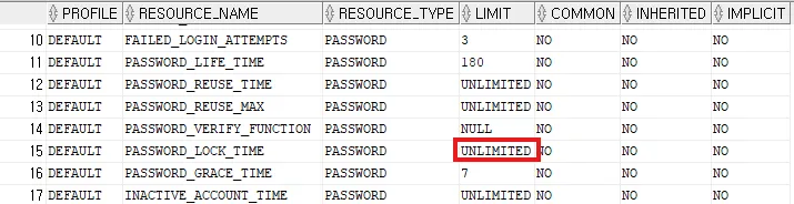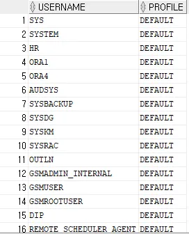 INACTIVE_ACCOUNT_TIME: 지정된 일 수 동안 데이터베이스에 로그인하지 않은 사용자 계정 잠금PASSWORD_VERIFY_FUNCTION: 암호의 복합성 검사