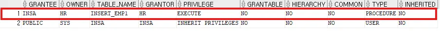 PUBLIC SYS INSA INSA INHERIT PRIVILEGES NO NO NO USER NO