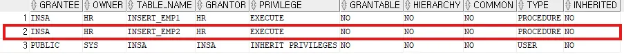 -- insa 유저가 insert_emp1을 호출했지만 insert_emp1을 만든 hr의 emp 테이블에 insert 수행