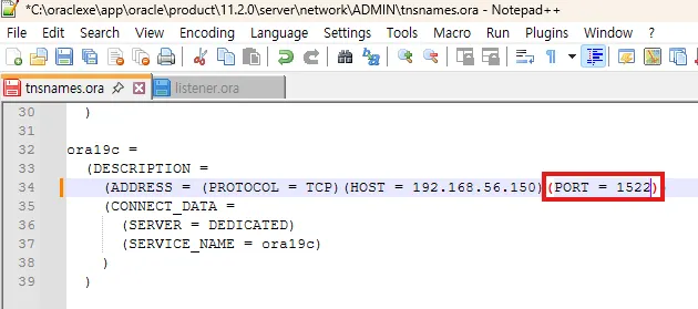 ... # 리눅스 가상 서버 tns에 윈도우 호스트 서버의 XE 정보 등록