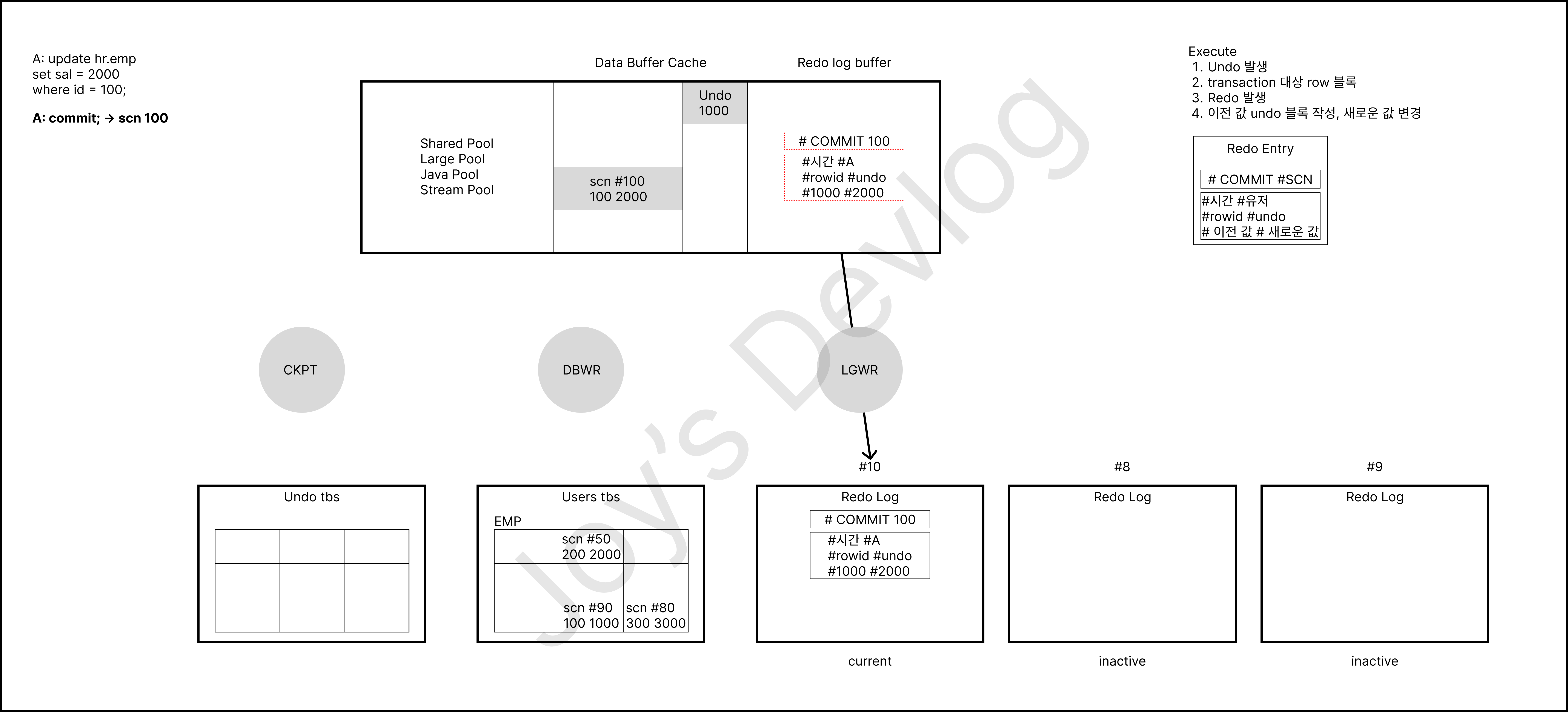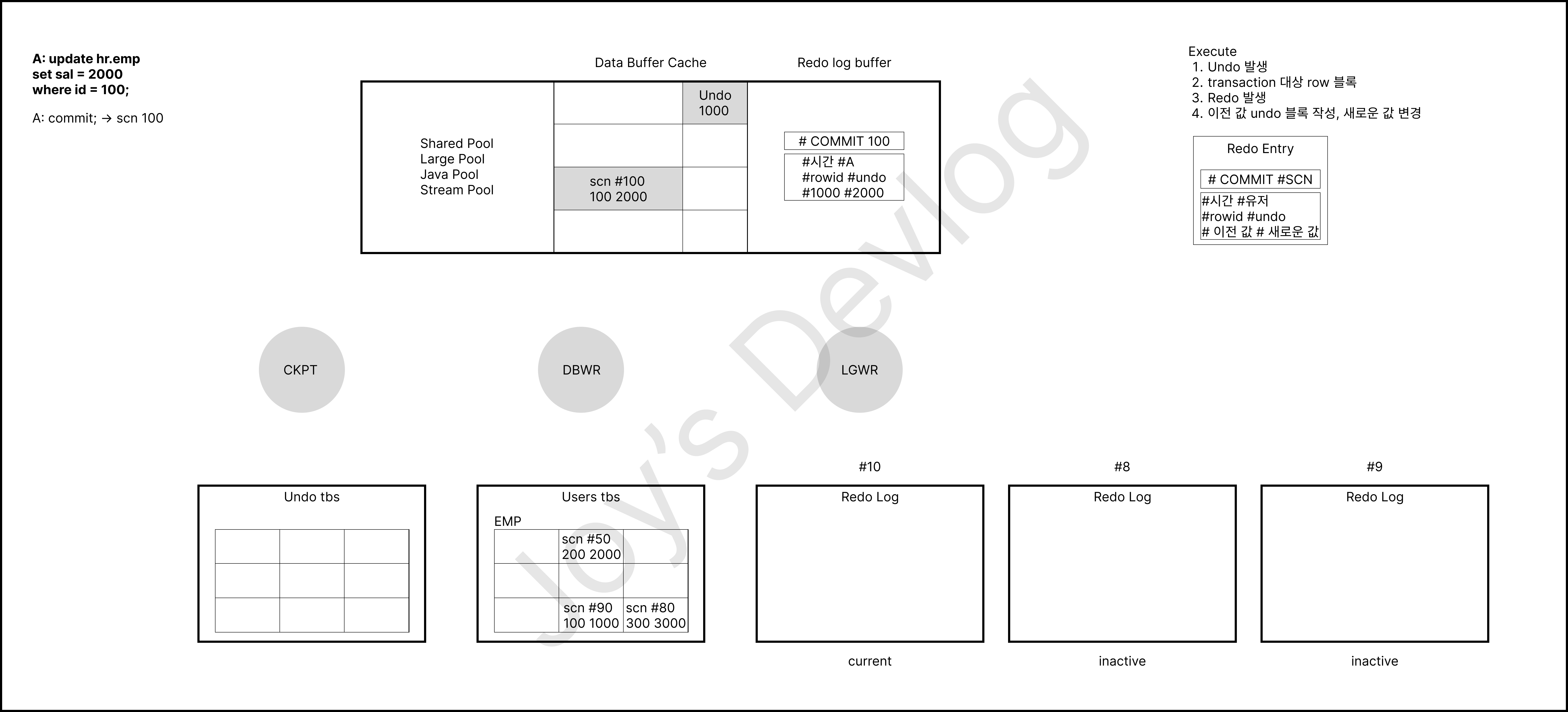 - 마지막 체크포인트 이후에 리두 정보가 발생되어 있음