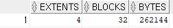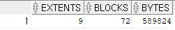 select extents, blocks, bytes from dba_segments where segment_name = 'REORG_TEST';