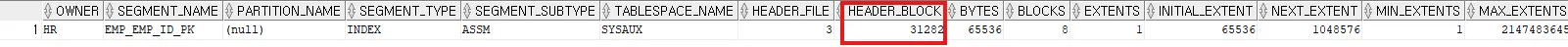 select * from dba_segments where segment_name = 'EMP_EMP_ID_PK';