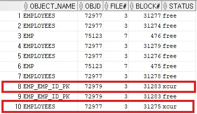 SYS@ora19c> select o.object_name, x.obj, x.file#, x.dbablk, x.tch, x.state