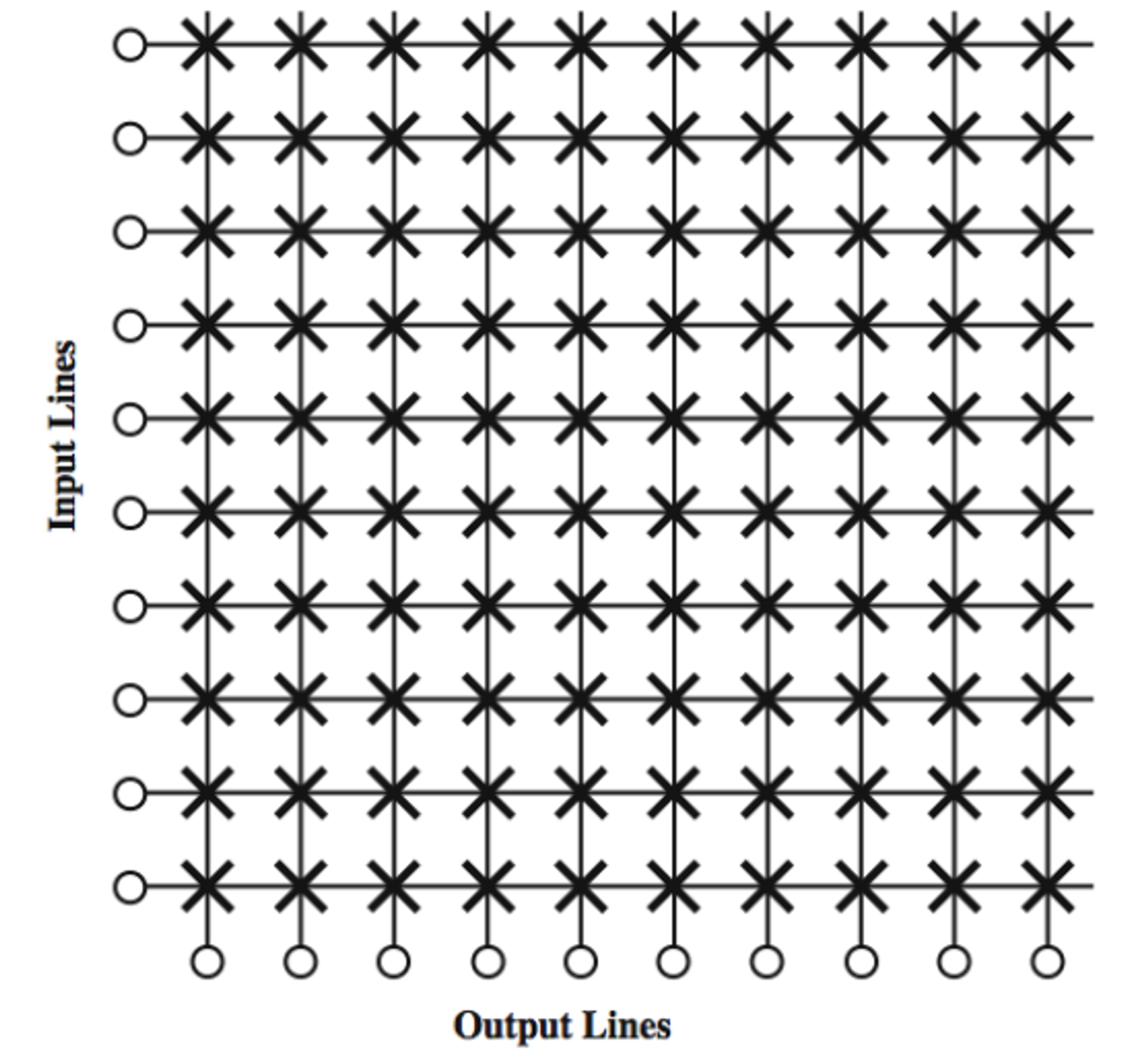 - crossbar switch보다 스위치의 개수를 줄일 수 있음