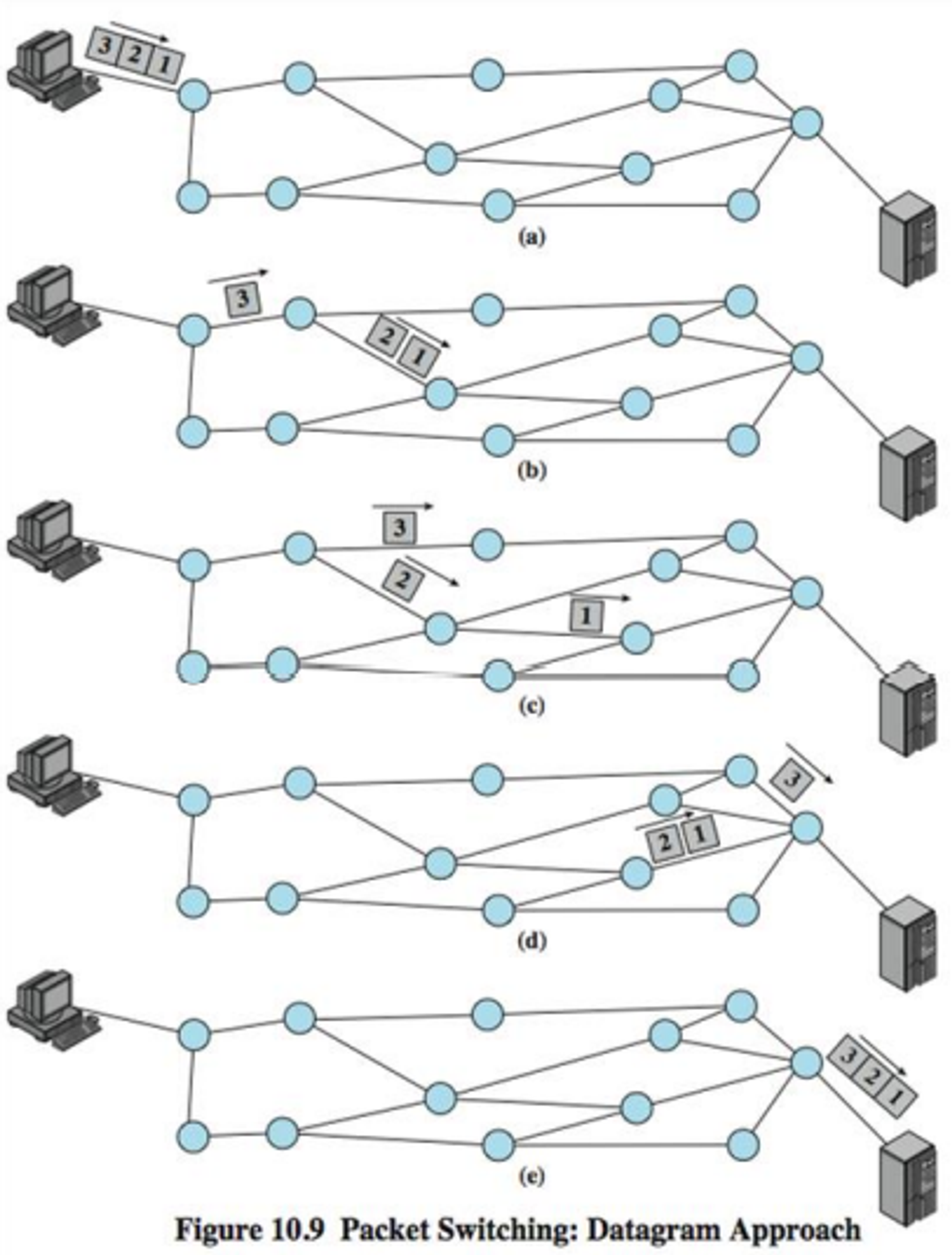 네트워크에 패킷을 넣고 각각의 노드들은 헤더를 보고 채널을 결정해서 출력 - 순서가 보장되지 않기 때문에 end node에서 순서를 재조정하는 부담이 있음
