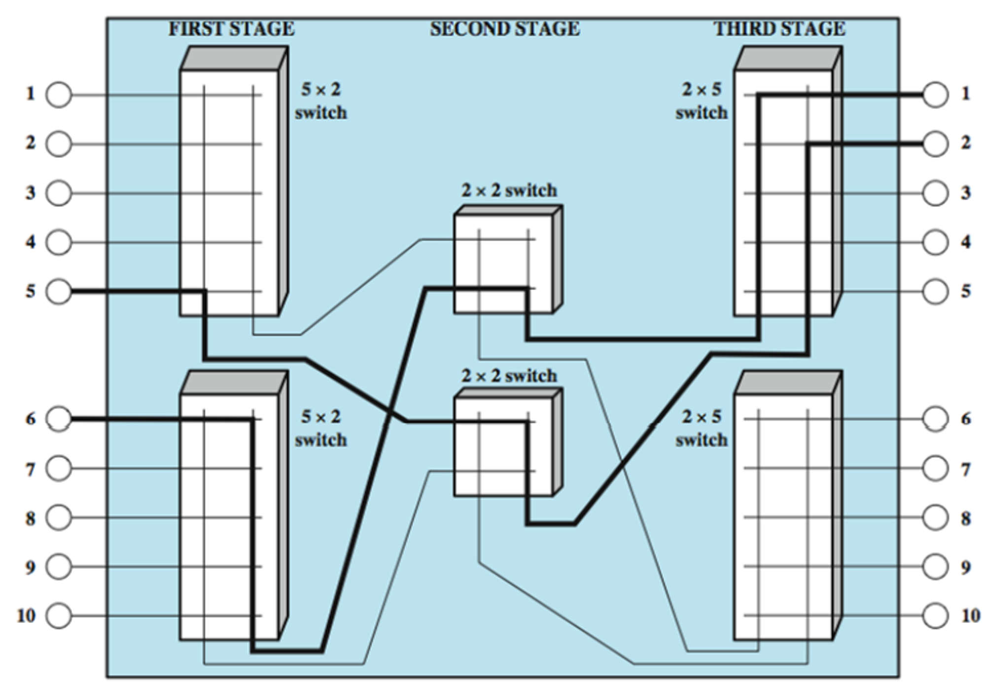 - crossbar switch보다 스위치의 개수를 줄일 수 있음
