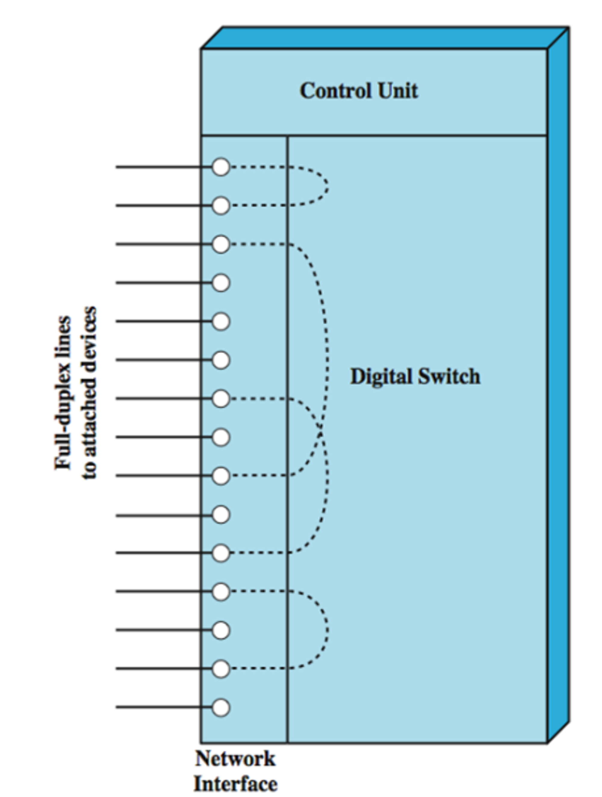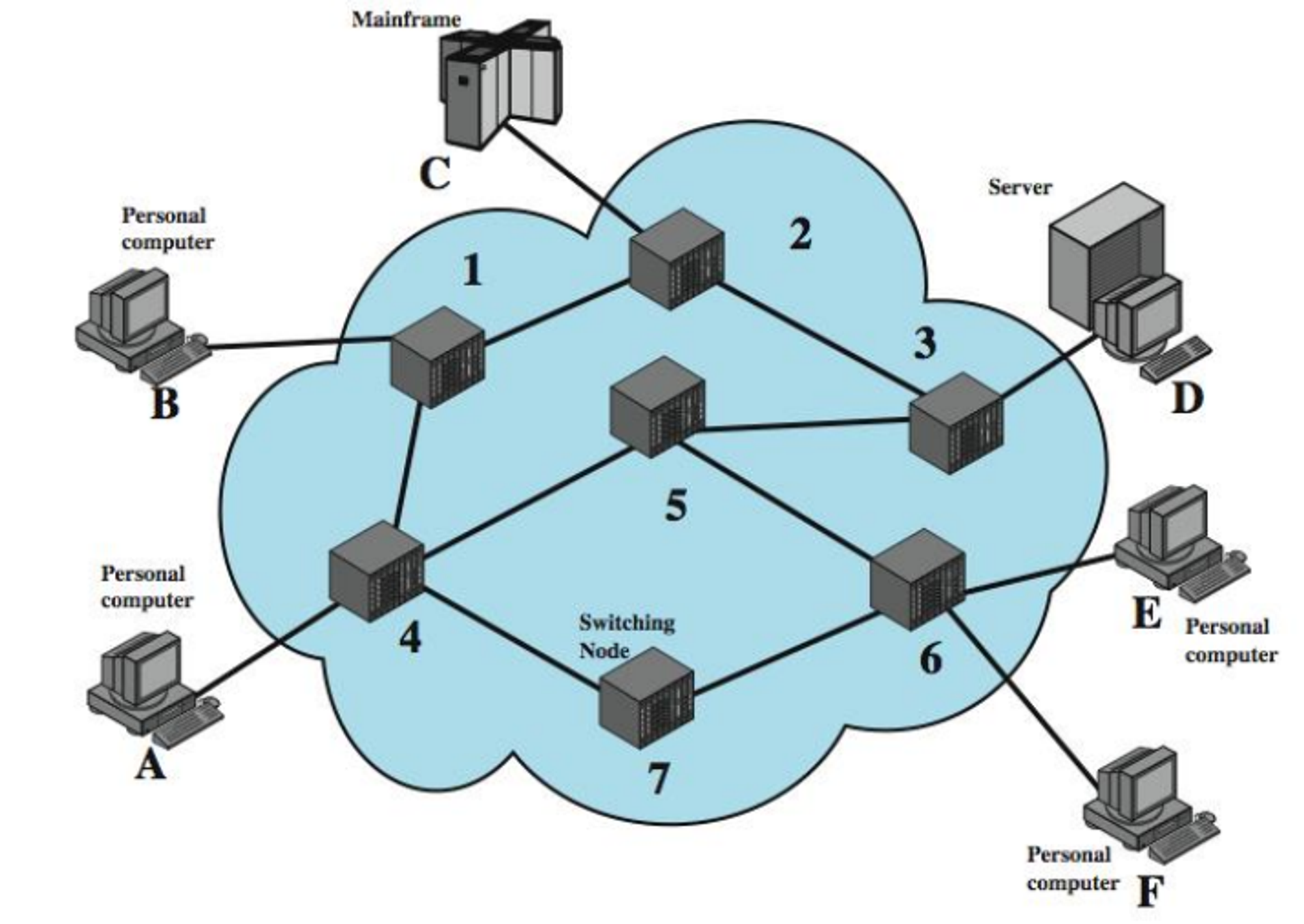 - switching node(교환노드)는 노드들 간에 데이터를 전송하는 교환 시설을 제공