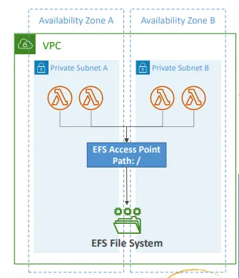 - Lambda를 구성하여 초기화 시점에 EFS 파일 시스템을 로컬 디렉터리에 마운트하도록 설정 가능