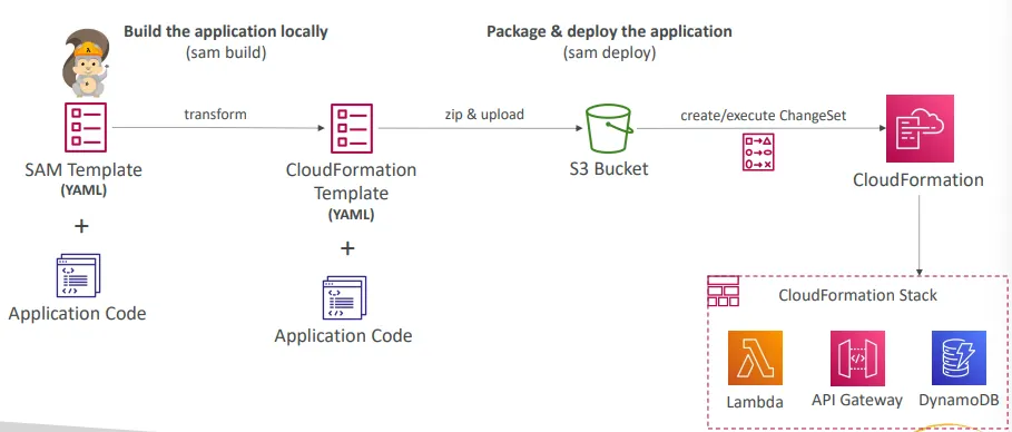 - 단순한 SAM YAML 파일로부터 복잡한 CloudFormation 템플릿을 자동 생성