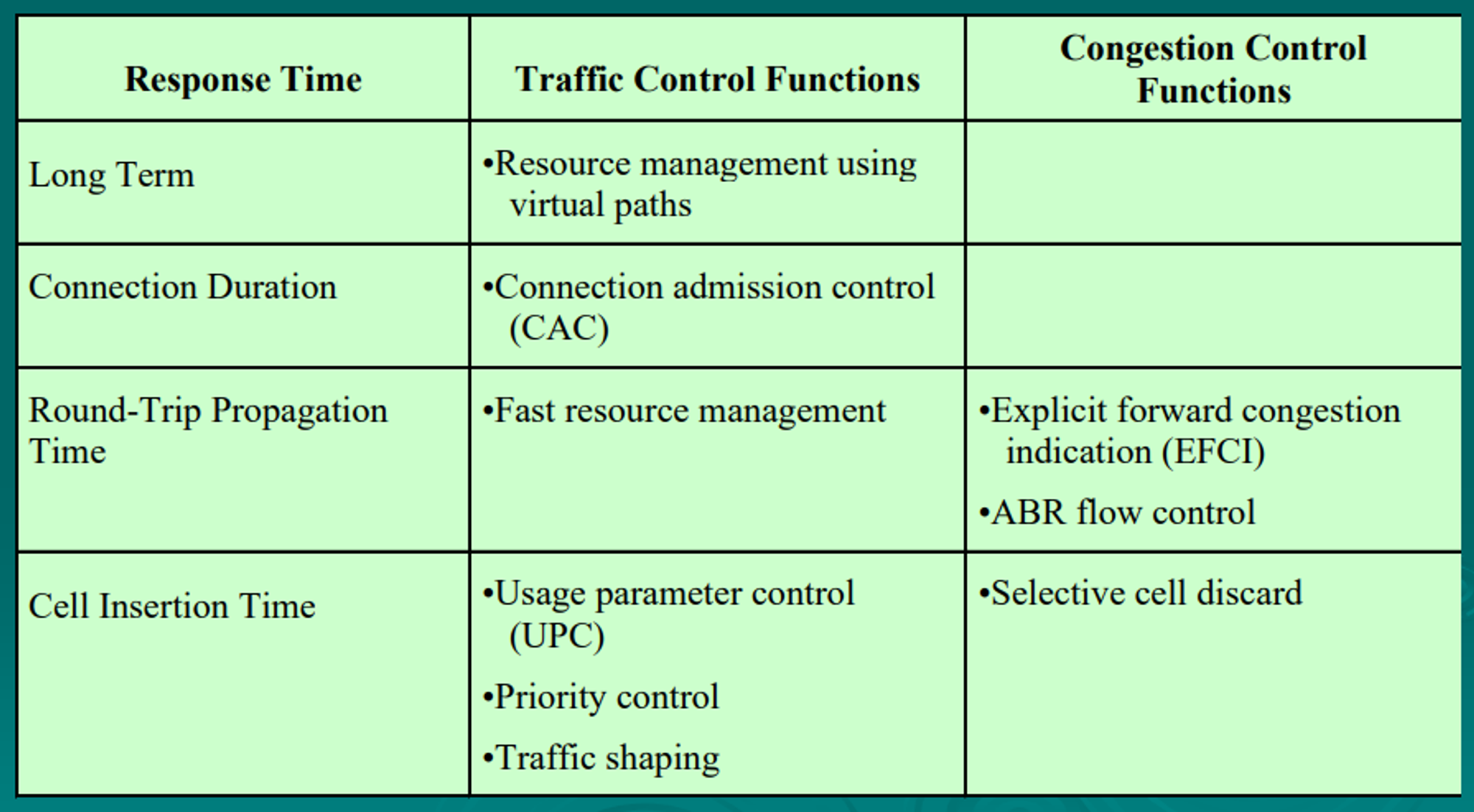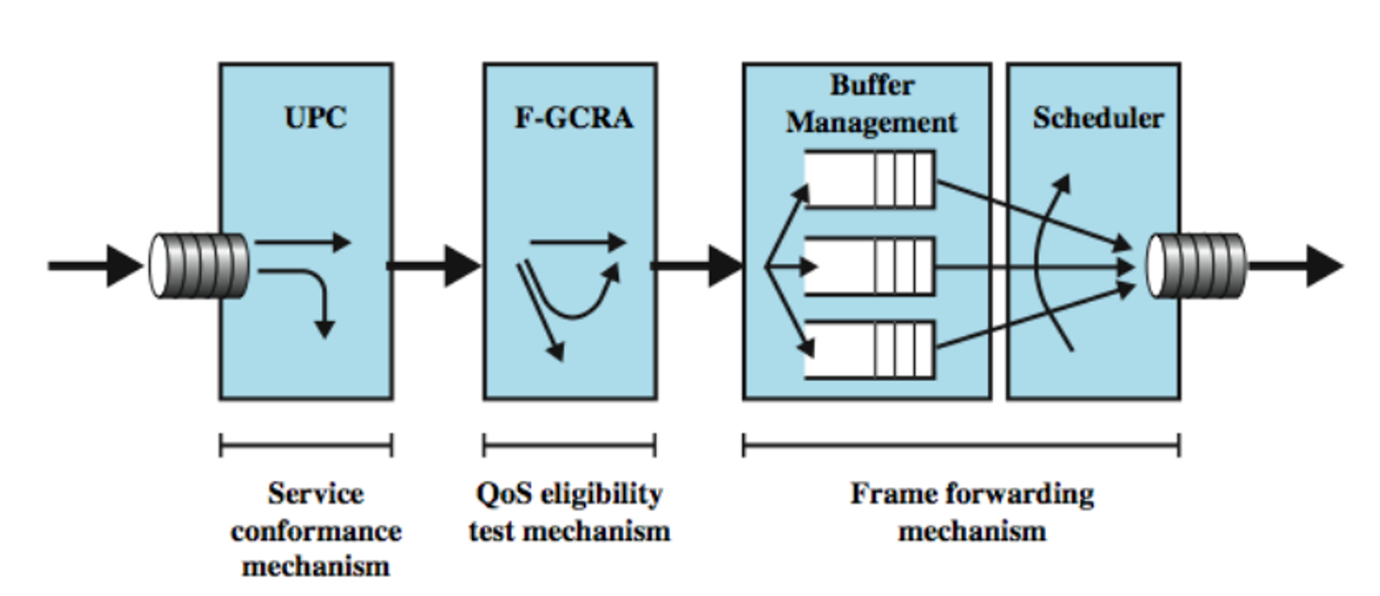 - F-GCRA (frame generic control rate algorithm) – QoS eligibility test mechanism