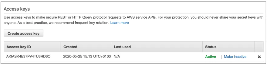 - 액세스 키는 AWS 콘솔을 통해 생성됨
