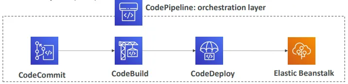 - CodeCommit, CodeBuild, CodeDeploy, Elastic Beanstalk, CloudFormation, GitHub, 서드파티 서비스 및 커스텀 플러그인과 호환